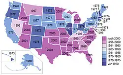 | Washington | 1976 | Außer Kraft gesetzt. | |