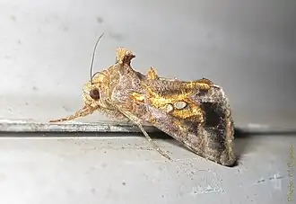 - ↑ Pacific Northwest https://pnwmoths.biol.wwu.edu/browse/family-noctuidae/subfamily-plusiinae/tribe-argyrogrammatini/chrysodeixis/chrysodeixis-chalcites/
