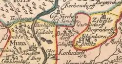 - ↑ Johann Adam Valentin Weigel: Die Fürstenthümer Sagan und Breslau. Himburgische Buchhandlung, Berlin 1802, S. 24 (Digitalisat auf Wikisource – Geographische, naturhistorische und technologische Beschreibung des souverainen Herzogthums Schlesien 6).