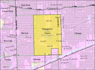 ![]() Lage von Cicero im westlichen Vorortbereich von Chicago | |||