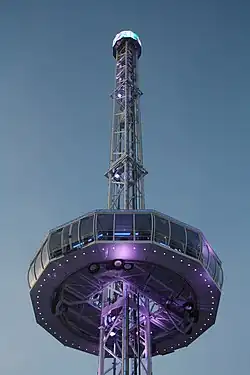 In der Adventszeit wird der im Dunkeln rot angestrahlte City Skyliner auch als „höchste Kerze der Welt“ vermarktet.