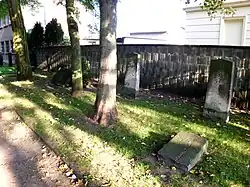 - Gefallenen-Denkmal für die Toten des Ersten Weltkrieges (Siegfried-Statue): Die Statue geht auf einen Entwurf des Berliners Viktor Seifert zurück und wurde 1928 im Auftrag des Stadtkreiskriegerverbandes auf dem damaligen Friedhof aufgestellt. Neben einer Einzelfigur, die Siegfried den Drachentöter darstellt, bestand das Kunstwerk aus neun Gedenktafeln, die auf einem gemeinsamen, breiten Sandsteinsockel platziert waren. Auf dem Sockel war ein Relief abgebildet, das einen knienden Frontsoldaten darstellte. Das Denkmal wurde nach dem Zweiten Weltkrieg abgebaut und aus Angst vor einer Zerstörung vom Wittenberger Steinmetzmeister Meyer auf dessen Grundstück vergraben. Nach der Wende übergab seine Witwe die Figur der Stadt, die sie 1996 wieder aufstellen ließ.