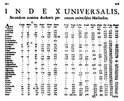 - Index Universalis, Secundum nomina Authoris per omnes universales Methodos