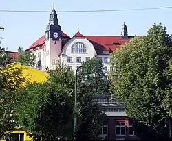 Ein Flügel wurde von der Realschule genutzt, der andere diente als Mädchen-Schule (damals war eine Trennung von Knaben und Mädchen in den Schulen üblich). Die Jungen besuchten die II. Bürgerschule in der Schwarzenberger Straße.[22] 1918, nach der Abdankung des Königs, wurde aus der Realschule eine „Oberrealschule mit Abiturberechtigung“.[22]
