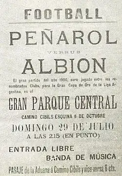 Plakat aus dem Jahre 1900, das die Partie zwischen Peñarol und Albion FC ankündigt