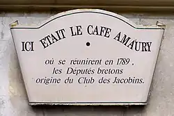 Der Bretonische Klub (frz. club breton) gründete sich am 30. April 1789. Sein traditioneller Treffpunkt war das Café Amaury in der Avenue de St. Cloud 36 in Versailles. Die Bretagne hatte unabhängig von den Generalständen ein eigenes Regionalparlament, und so beschlossen dessen Abgeordnete, die schon über mehr Erfahrungen im Parlamentarismus verfügten, sich vor den jeweiligen Treffen der Generalstände abzusprechen. Dazu waren die Vertreter des Dritten Standes und des niederen Klerus bereit und trafen sich daher in den Räumen des Café Amaury.