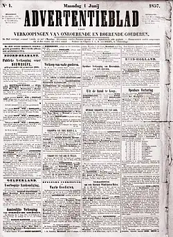 Die Zeitung erschien erstmals am 1. Juni 1857 unter dem Titel Advertentieblad voor verkoopingen van roerende en onroerende goederen. Sie startete als eine montags erscheinende Wochenzeitung und war, getreu dem Titel, von dem Gründungsherausgeber T.C.B. Ten Hagen zunächst als ein reines Anzeigenblatt entworfen worden. Nachdem Ende April 1877 der erste Leserbrief abgedruckt worden war, lieferte die in jenem Jahr in Algemeen Nederlandsch Advertentieblad umbenannte Zeitung seit 1883 auch redaktionelle Beiträge. Der Name wurde später in Cobouw, eine Abkürzung für „Centraal Orgaan voor de bouwnijverheid“ (Zentralorgan für das Bauwesen), geändert. Am 2. Oktober 1961 stellte Cobouw auf eine tägliche Erscheinungsweise, am 1. November 2007 auf das Tabloid-Format um.[2]