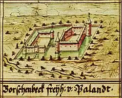 Der Codex Welser ist eine um 1720 entstandene Landesbeschreibung und Bestandsaufnahme des Herzogtums Jülich. Der Codex wird nach seinem Autor Johann Franz von Welser benannt und beinhaltet neben 39 herrschaftlichen Porträts und 28 Karten der Ämter und Städte auch 242 kolorierte Zeichnungen von befestigten Städten und Burglehn („Ritter/Adeliche und Lehn-Stätt und Flecke Der Gülicher Provintz welche in guten Baustand stehen/seint alhier nach dem U B entworfen“) in alphabetischer Ordnung. So zeigt die erste Landtafel in 46 Miniaturen die Orte Aldenhoven bis Dülcken. Neben der Ortsangabe finden sich unter den Bildern bei Burgen auch die Angaben des damaligen Besitzers, was die Zuordnung und Datierung der Bilder erleichtert.