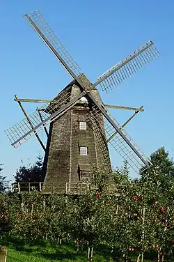 Heute steht die alte Mühle unter Denkmalschutz. Mit ihren Flügeln reicht sie mehr als 25 Meter hoch. Sie gehört zum Typ der Kappen- oder Turmwindmühle. Bei dieser Mühlenart steht der gesamte Unterbau (Turm) fest, und nur die Kappe wird in den Wind gedreht.
