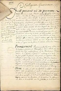 Collège des Grassins (Paris): Gründung und Satzung. Manuskript, circa 17. Jahrhundert (Sorbonne-Bibliothek, NuBIS)