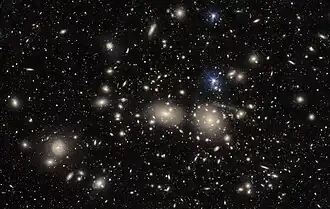 Bereits 1933 hat Fritz Zwicky darauf hingewiesen, dass der Coma-Haufen einen wesentlichen Anteil an dunkler Materie enthalten muss.[2]