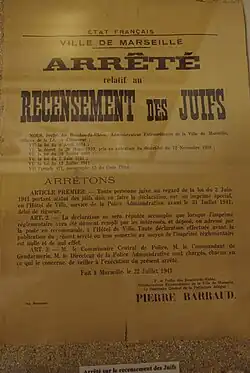 - ↑ Am Beispiel Marseille: Donna F. Ryan: The Holocaust & the Jews of Marseille: The Enforcement of Anti-Semitic Policies in Vichy France. University of Illinois Press, Urbana 1996, S. 53–79. ISBN 0-252-06530-1.