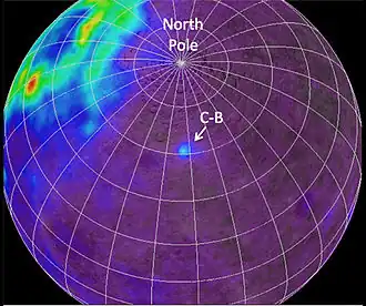 | Position der Compton-Belkovich-Thoriumanomalie auf dem Mond. | ||