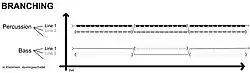 Beim Branching wird ein Musikstück in verschiedene Schichten unterteilt. Die Idee hinter dieser Aufteilung besteht darin, dass eine oder mehrere dieser Schichten stummgestaltet oder gegen andere Schichten ausgetauscht werden können, sobald sich das Gameplay verändert. So kann man für ein Musikstück beispielsweise zwei Percussion-lines erstellen, die jeweils verschiedene Stimmungen ausdrücken. Je nach Gameplay-Situation werden diese dann untereinander ausgetauscht. Ähnlich kann man mit anderen Schichten (Bass line, Harmonien, Melodien) verfahren. Diese Technik weist einige Nachteile auf: Es muss viel Zeit zum Komponieren aufgewendet werden, da man stets unterschiedliche Versionen der Schichten erstellen muss. Des Weiteren muss man ständig kontrollieren, ob die unterschiedlichen Versionen zueinander passen. Außerdem verbraucht diese Technik viel Rechenleistung, da nicht nur ein Track, sondern mehrere Tracks synchron laufen.
