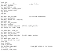 Teil der Infektionsroutine eines Windows-Dateivirus, das PE-Dateien infiziert; Assemblersprache.