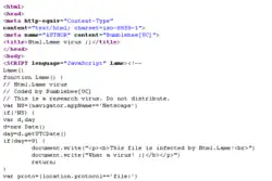 Teil des Source-Codes von Html.Lame, einem Skriptvirus, das HTML-Dateien infiziert.