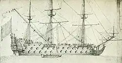 ![]() Linienschiff vom gleichen Typ wie die Triomphant in den Jahren 1670–1680.