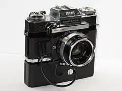Die Contarex ist eine Kleinbild-Spiegelreflexkamera, die von der Zeiss Ikon AG, Stuttgart, in den 1960er Jahren produziert wurde. Sie gilt als eine der aufwändigsten und solidesten Kleinbild-Spiegelreflexkameras, die je gebaut wurden. Contarex-Modelle wurden z. B. im Jahr 1961 zu Preisen von 1224 DM (Contarex mit Zeiss Tessar 1:2,8/50 mm) bis 1660 DM (mit Zeiss Planar 1:1,4/55 mm) angeboten.[1] Wegen der sehr hohen Entwicklungs- und Herstellungskosten war das Contarex-System kein wirtschaftlicher Erfolg für den Hersteller.[2] Die Contarex genoss international einen guten Ruf. Eine modifizierte Contarex wurde von Astronaut Edward White beim Außenbordeinsatz während des Gemini 4 Fluges der NASA am 3. Juni 1965 verwendet.[3]