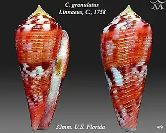- George Washington Tryon: Manual of Conchology, structural and systematic, with illustrations of the species, vol. VI; Academy of Natural Sciences, Philadelphia 1884. C[onus] granulatus Linn., S. 81f.