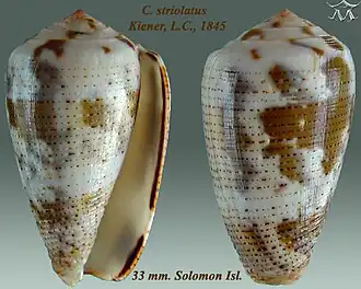 Conus striolatus ist der Artname einer Schnecke aus der Familie der Kegelschnecken (Gattung Conus), die im mittleren Indopazifik verbreitet ist und sich von Fischen ernährt.