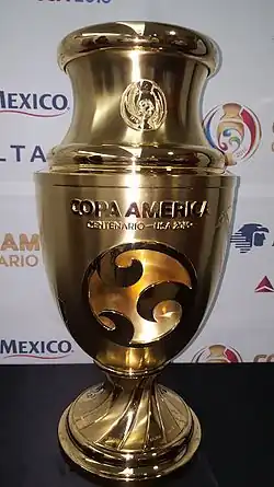 Die Copa América ist nach dem olympischen Fußballturnier das zweitälteste noch stattfindende Fußballturnier für Nationalmannschaften. Erstmals wurde es 1916 zu Ehren der Unabhängigkeit der Vereinigten Provinzen des Río de la Plata ausgetragen, die vor allem den Vorgängerstaat und eine weiterhin offizielle Bezeichnung Argentiniens darstellen, aber auch das heutige Uruguay umfassten. Schon 1910 war ein Campeonato Sudamericano mit drei Teilnehmern durchgeführt worden, welches Argentinien gewonnen hatte und manchmal als erste Copa América bezeichnet wird. Bis 1967 hieß das Turnier wie der Vorgänger von 1910 Campeonato Sudamericano, seit 1975 Copa América. Bereits 1910 wurde um eine frühere Trophäe namens „Copa América“ gespielt. Infolge des organisatorischen Erfolgs von 1916 stiftete das argentinische Außenministerium der CONMEBOL 1917 die heutige Copa América. Diese wurde zur ersten offiziell angesetzten Neuauflage 1917 eingeführt, während man 1916 noch ohne Trophäe hatte auskommen müssen.[1][2] Der Verband CONMEBOL hatte sich erst während des Turniers von 1916 am argentinischen Unabhängigkeitstag gegründet, nachdem der uruguayische Vertreter Héctor Rivadavia die Chance dazu ergriffen hatte.[3] Seit 1997 gibt es mit der „Copa Bolivia“ außerdem einen Pokal, der an den unterlegenen Finalisten geht und den Bolivien 1997 im eigenen Land als erstes überreicht bekam.[4]