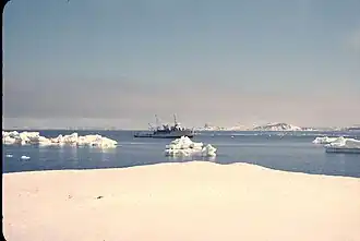 Das chilenische Forschungsschiff Lientur in der Coppermine Cove im Jahr 1957 | ||