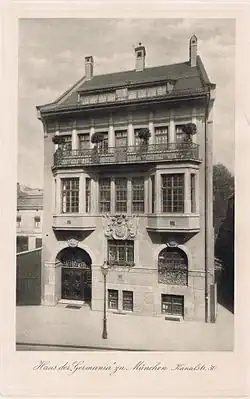 Das Germanenhaus wurde vom Münchener Baumeister und Corpsstudenten Gabriel von Seidl bereits in der Planungsphase speziell an die Bedürfnisse einer Studentenverbindung angepasst. Erbaut wurde das Haus in den Jahren 1906/07 zum Gesamtpreis von knapp 204.000 Mark. Wegen der Bedeutung seines Erbauers für die Münchner Baugeschichte und seiner gut erhaltenen Fassade steht das Haus seit 1980 unter Denkmalschutz.