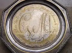 Der Wahlspruch der Masuren ist Virtus contemnit mortem![A 1] Die Buchstaben C, V und M bilden den Zirkel und stehen für den Wunsch „Vivat Corona Masoviae“. Dass sie auch als „Vivant Clemens Müller“ gelesen werden können, wurde erst beim 2. Stiftungsfest bemerkt.[EN 1] Rudolf August Clemens und August Müller waren die beiden ersten Senioren der Landsmannschaft Masovia.[A 2] Auf Müller 1 und Clemens 3 folgten Rudolf Gregorovius, Friedrich Bergenroth, Karl Claussen, Wilhelm v. Hippel 2, Adolf Müller 2, Heinrich Dembowski und Gustav Bergenroth.[EN 1] Über die Amtsführung von Dembowskis Nachfolger entbrannte erbitterter Streit zwischen zwei Lagern. Dembowski und Friedrich Kellermann führten die „feinen“, Gustav Bergenroth und Adolf Müller die „groben“ Masuren. Der Streit endete mit dem tödlichen Duell von Otto Bertram gegen seinen Corpsbruder Friedrich Neesemann am 30. April 1837.[EN 11]