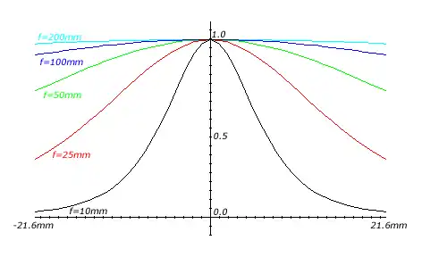 Einige Objektivkonstruktionen zeigen einen gegenüber dem Cos4-Gesetz unterschiedlichen Randlichtabfall: