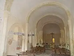 - Die ehemalige Prioratskirche und heutige Pfarrkirche Saint-Jean-Baptiste ist ein von einem hohen Vierungsturm überragter Bau aus dem 11. und 12. Jahrhundert mit einer weitgehend schmucklosen und aus grob behauenen Steinen gemauerten Apsis. Diese ist durch einfache Strebepfeiler gegliedert und schließt nach oben in einem Konsolenfries mit Tierköpfen ab. Über dem einfachen Archivoltenportal der Westfassade wiederholt sich das Tierkopfmotiv. Das gedrungen wirkende Kirchenschiff wird von einem Tonnengewölbe mit Gurtbogen als Unterzügen überspannt; die Apsis mit ihrer Kalottenwölbung ist ungegliedert. An der nördlichen Seitenwand sind noch die Reste eines im 15. oder 16. Jahrhundert aufgemalten dunklen Trauer- oder Gedenkbandes (litre funéraire) zu erkennen; darunter befindet sich ein Fresko der hl. Barbara. Der Kirchenbau ist seit dem Jahr 1955 als Monument historique anerkannt.[2]