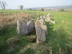 Der Nordost-Südwest orientierte Dual-Court Cairn besteht aus einigen Randsteinen des gut erhaltenen, nach Osten abfallenden, trapezoiden Cairns, drei durch Schwellensteine getrennten Kammern und einem Stein der Exedra. Die Decksteine der Kammern sind nicht erhalten und der Hof (englisch court) ist in eine Feldgrenze eingegliedert. Die Galerien liegen Rücken an Rücken. Die südliche ist etwa 7,0 m, die Mittelkammer etwa 3,0 m und die Nordkammer etwa 4,0 m lang. Die Kammern liegen etwa einen Meter unter dem heutigen Bodenniveau.
