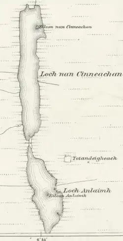 Abschnitte, die zuvor von Torf bedeckt waren, wurden bei den Anlagen im Loch Urbhaig und Loch Fada entdeckt. Die Basen sub-rechteckiger Gebäude wurden im Loch Cliad und Loch Cinneachan erkannt.