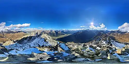 - ↑ Berechnetes 360°-Panorama (U. Deuschle; Hinweise) von der Crasta Mora