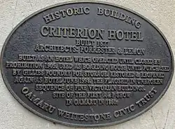 - ↑ a b c Criterion Hotel (3 Tyne Street). The Oamaru Whitestone Civic Trust, archiviert vom am 20. Juni 2014; abgerufen am 7. Februar 2016 (englisch, Originalwebseite nicht mehr verfügbar).