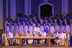 Das Passionsspiel wird in obersorbischer Sprache aufgeführt. Eine Simultan-Übersetzung ins Deutsche kann von den Zuschauern über Kopfhörer verfolgt werden.