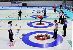- ↑ Zeitplan der Weltmeisterschaft. ( vom 10. Mai 2015 im Internet Archive) wmdcc2015.curlingevents.com (englisch); abgerufen am 7. Februar 2024.