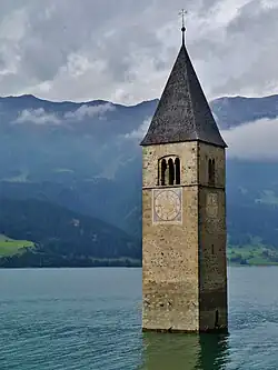 - ↑ a b Max Wieseler: Curon bei Netflix: Gibt es den Kirchturm im See wirklich? auf moviepilot.de, 14. Juni 2020; abgerufen am 14. Juni 2020.