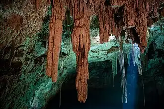 - Drei nur wenige Kilometer außerhalb des Ortes gelegene Cenotes (Cenote Chelentún, Cenote Chansinicché und Cenote Bolonchoojol), in denen zumeist auch geschwommen werden kann, sind mit Pferdefuhrwerken auf Schienen erreichbar.[2]