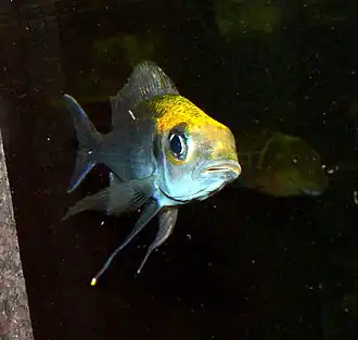 Cyathopharynx furcifer in einem Aquarium des Zoo Leipzig. | ||||||||||||