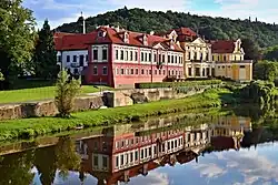 Schon 1910 erwarb Cyril Bartoň-Dobenín das für die tschechische Geschichte bedeutende ehemalige Kloster Zbraslav, das nach der Säkularisation als Zuckerfabrik diente und sich in einem schlechten baulichen Zustand befand. In den Jahren 1911 bis 1925 baute er die ehemaligen Klostergebäude zu einer dreiteiligen Schlossanlage um, die in Teilen für die Öffentlichkeit zugänglich war. Sie diente auch als Wohnsitz für seine Familie.