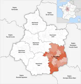 ![]() Lage des Départements Cher in der Region Centre-Val de Loire | |