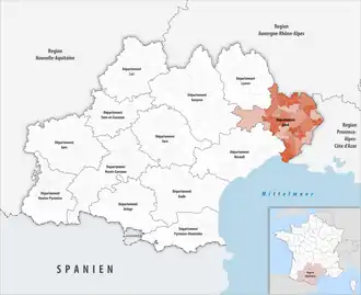 ![]() Lage des Départements Gard in der Region Okzitanien | |