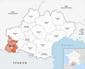 ![]() Lage des Départements Hautes-Pyrénées in der Region Okzitanien | |