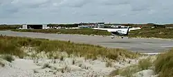 Im Ostteil der Insel liegt der 1962 eröffnete Flugplatz Helgoland-Düne, der täglich, sofern es das Wetter zulässt, von kleinen ein- und zweimotorigen Flugzeugen genutzt wird. Er hat drei Start- und Landebahnen. Es bestehen Linienverbindungen zu einigen Flugplätzen auf dem küstennahen Festland. Es gibt Ampeln und Hinweisschilder, die Fußgänger vor im Tiefflug landenden Flugzeugen warnen. Das Dünen-Taxi verbindet den Flugplatz mit dem Fähranleger. Es ist eines der wenigen Landfahrzeuge mit Verbrennungsmotor in der Gemeinde Helgoland, wo gemäß § 50 StVO keine Kraftfahrzeuge oder Fahrräder geführt werden dürfen.