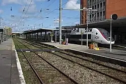 Der früher als Dunkerque-Locale bezeichnete Bahnhof wird von TGV-Zügen angefahren, die die Stadt über Arras mit Paris verbinden. Zudem verkehren dort TERGV-Hochgeschwindigkeits-Regionalzüge von und zum Bahnhof Lille-Europe und Züge des TER Hauts-de-France, u. a. von und nach Calais, Hazebrouck, Arras und dem Bahnhof Lille-Flandres.