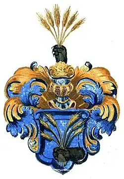 - Wappen (1659): In Blau eine quergestellte abgeschnittene braune Bärentatze, sieben goldene Kornähren haltend; auf dem Helm mit blau-goldenen Decken die Bärentatze mit den Ähren wachsend