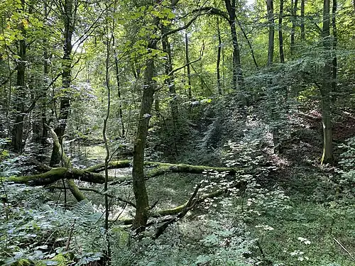 Buchenwald mit sumpfigem Talgrund südlich der Bahnlinie