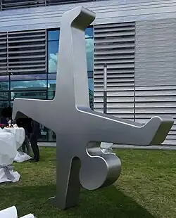 Die im Volksmund Radschläger genannte Plastik, der mit einer Höhe von 36 Metern und 30 Tonnen schwere „Pylon“ aus V2A-Stahl von Max Kratz, steht heute vor dem Flughafen Düsseldorf.[9] Die beiden auseinanderstrebenden Spitzen der Skulptur stilisieren die Beine des Düsseldorfer Radschlägers.
