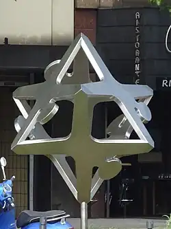 - ↑ Westdeutsche Zeitung: Stadt-teilchen Der Künstler schuf die Symbolfigur für das Projekt Radschläger-Kunst und viele andere Objekte. 3. März 2017, abgerufen am 14. April 2022.