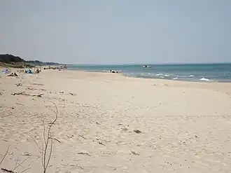 Die neun Kilometer lange Nehrung ist teilweise nur 100 Meter breit. Weite Rohrflächen am See und feinsandige Dünen und Strand auf der Ostseeseite sind ihr Schutz. Das früher so genannte „Buckower Deep“ verbindet den See mit dem Meer.